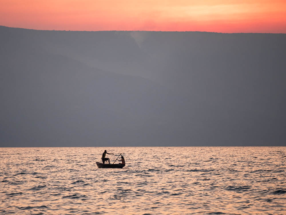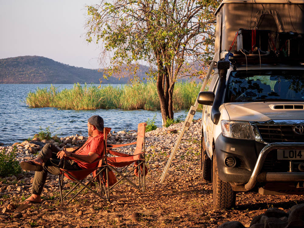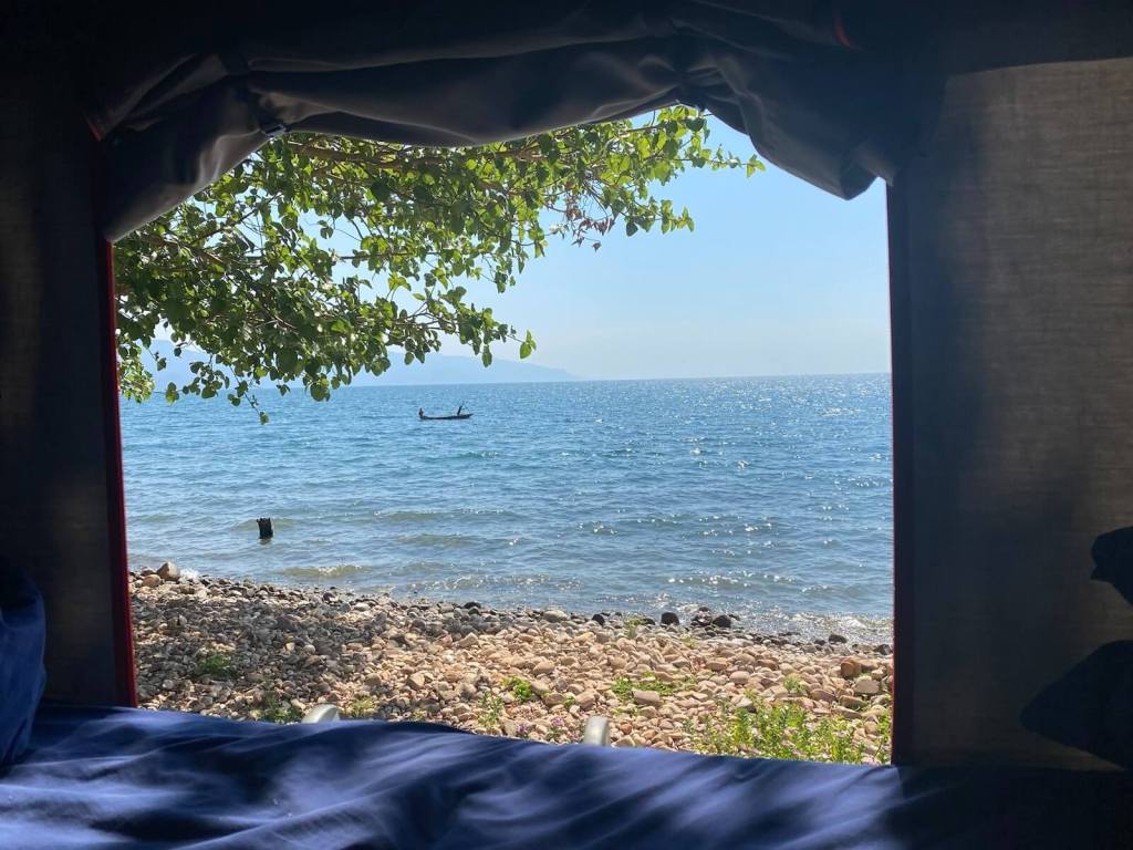 West of Mpulungu, on the lake, is reported to be a great little campsite made available by a science research station used mainly by scientists and grad students for parts of the year. We try our luck and drive up to the station over a very rocky road to find a big welcome from the caretaker. The camp manager, a very nice person called Celestine, points out a perfect camping spot for us and our roof top tent on the Zambian shore of Lake Tanganyika. The campsite is so perfect that we decide to stay for three nights enjoying the sights of the lake and getting a few jogs in where we pass by small homesteads and a local school each morning. Every evening is spent with a small fire as the sun goes down and the local subsistence fishermen paddle past in their dugout canoes. The first, and one of the best, night skies of this leg of our expedition opens up above us and the depth of the surrounding universe swallows us in each night as we sit by our simple campfire on the shore of this ancient lake.
