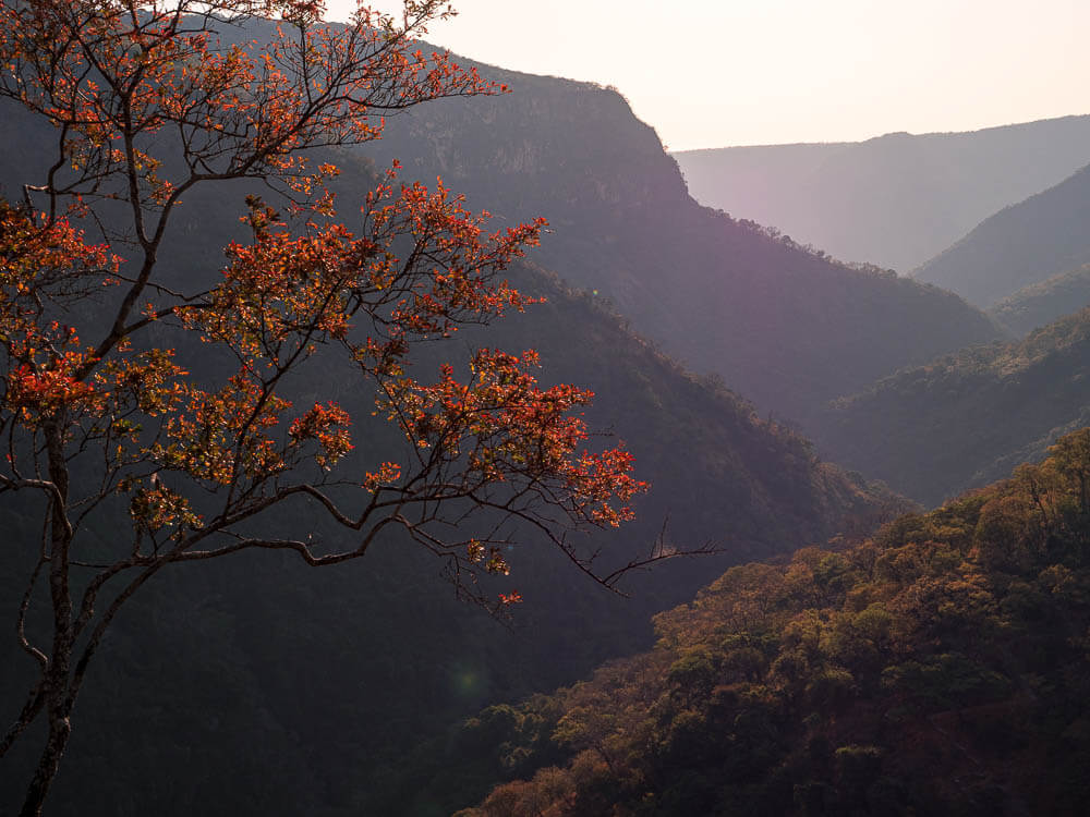 We enjoy a walk along the pathway on the southern side of the gorge and are able to view the waterfall as the shadows lengthen along the gorge walls. The light on the waterfall disappears as the sun moves towards sunset.