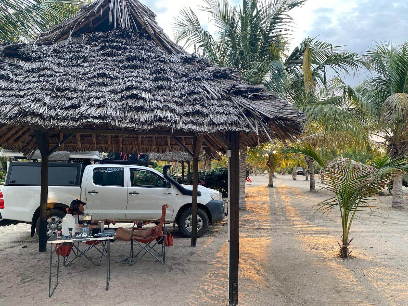 We park up near a large tree under the shade and cook our own food while enjoying a few beers under the East African coastline stars.